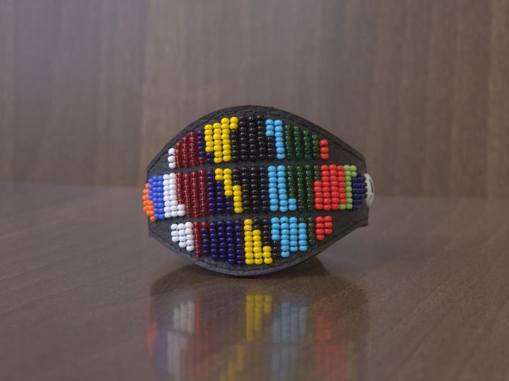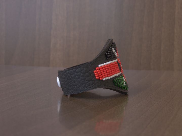 The Shield is defined by its geometry. A central, shield-shaped form sits on the wrist. Three horizontal bands of beadwork create structure, giving the piece its weight and balance. Every element is placed with intention. The result? Balanced. Measured. Resolved.